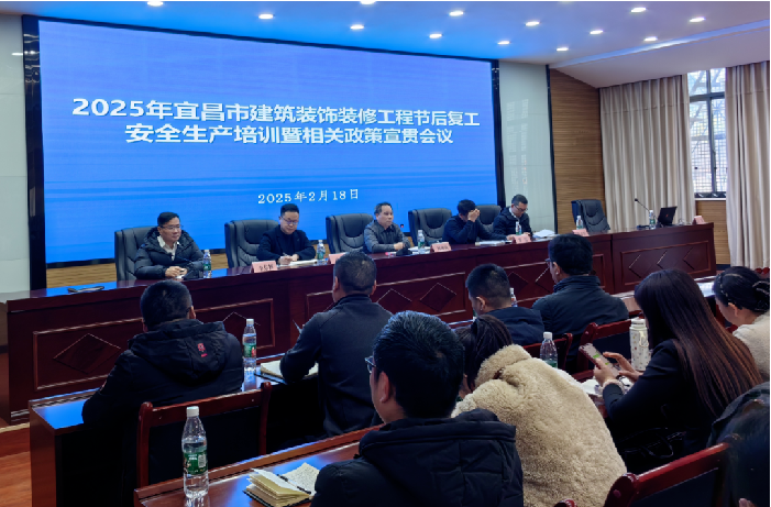 宜昌市建筑装饰协会组织开展建筑装饰工程节后复工安全生产培训会议暨相关政策宣贯会议。市住新局党组成员、副局长刘溯剑出席会议并讲话...