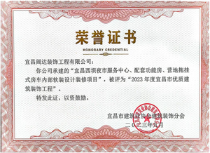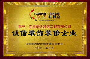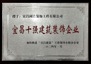 3、获得荣誉:公司先后被评为《宜昌市十大优秀大宅设计机构》、《宜昌市住宅装饰装修5A级信用企业》、2022年至2025年,连续四年荣登全市装修及建材企业经营行为红榜,2021年被宜荆荆恩住博会组委会授予《诚信装饰装修企业》,2022年至2024年连续三年被宜昌市建筑装饰协会、宜昌市住建委评为“宜昌市十强家装企业” 和“宜昌十强建筑装饰企业”,在宜昌市第十届建筑(装饰装修)职业技能大赛中,荣膺三等奖;2024年被湖北省评为“标杆企业”;公司还连续多年被评为“精准扶贫优秀企业”;在2020年新冠疫情肆虐期间,更是被评为“抗疫先进企业”。