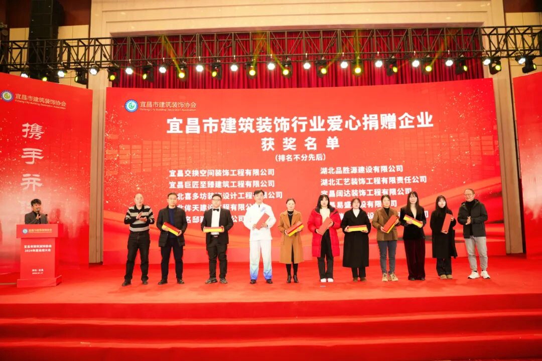 会上,市建筑装饰协会为获得“2024年湖北省优良建筑装饰工程”的16个项目颁发奖杯和证书;分别对2024年度宜昌市建筑装饰行业突出贡献企业、宜昌市建筑装饰行业履责担当会员企业、宜昌市建筑装饰行业爱心捐赠企业、和宜昌市建筑装饰行业诚信品牌供应商予以表彰;并为受聘宜昌市建筑装饰协会公共建筑类的10名设计专家和住宅装饰类的10名设计专家颁发聘书。