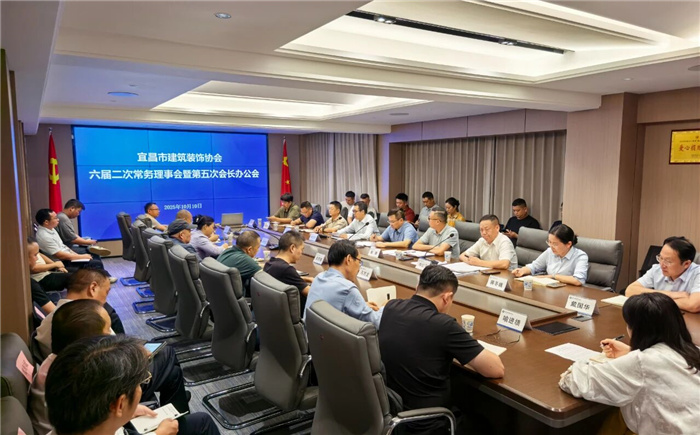 2025年10月10日,宜昌市建筑装饰协会第六届第二次常务理事会暨第五次会长办公会圆满召开。市建筑装饰装修监督站党支部书记书记、站长李东辉出席指导。协会副会长兼秘书长李红平主持会议,全体理事会成员、监事会及常务理事共40人参加了会议。