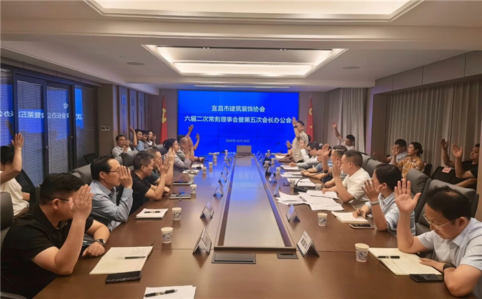 今年上半年以来,会员企业数量不断增加,根据章程和行业发展的需要,拟增补湖北幻天科技有限公司为理事单位、佛山市沃杰森建材有限公司为常务理事单位、经会长办公会提名,拟任宜昌鹏程装饰设计工程有限公司喻进绩同志任副会长,提请会议进行了表决,表决事项均全票通过。